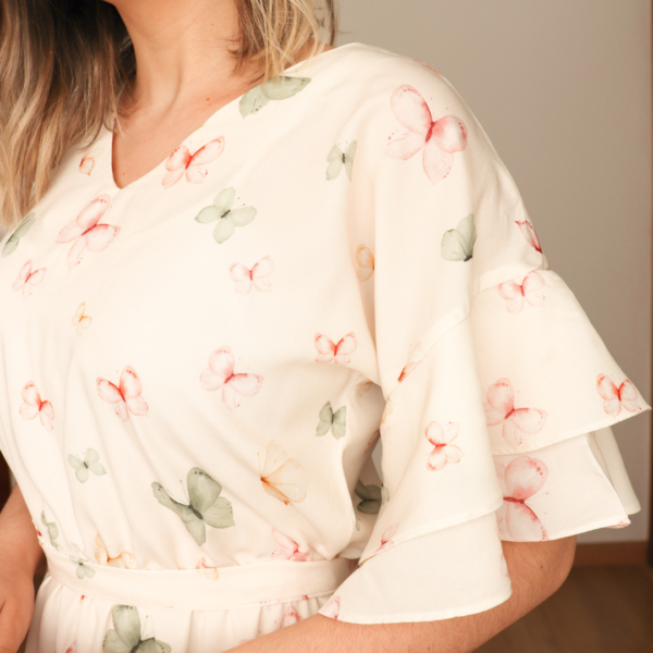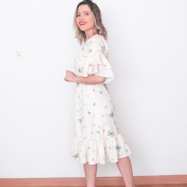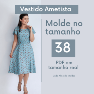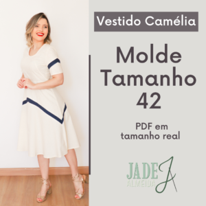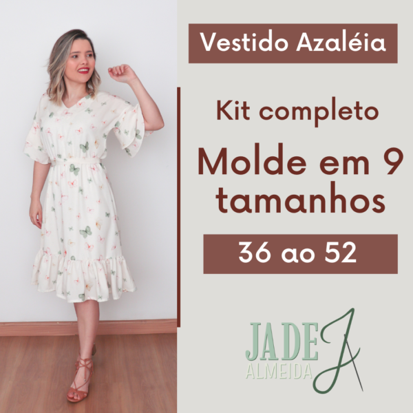 Neste arquivo você terá acesso ao molde do Vestido Azaleia, nos tamanhos 36 ao 52, prontos para imprimir. Ele tem a saia midi com babado na barra, manga japonesa com barra godê e decote V. Este é um molde de nível fácil para quem tem experiência básica com costura. Pode ser feita em diferentes tecidos. Este é um molde de nível intermediário para quem tem experiência básica com costura.