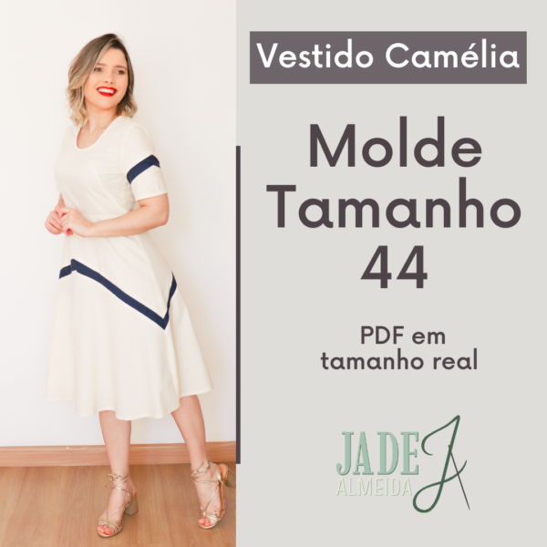 Neste arquivo você terá acesso ao molde do Vestido Camélia, no tamanho 44, pronto para imprimir. Ele tem uma saia evasé com recorte, manga simples com o mesmo recorte da saia. Pode ser feita em diferentes tecidos. Este é um molde de nível intermediário para quem tem experiência básica com costura.
